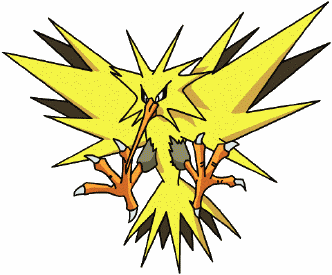 | Japanese Name: SANDAA Type: Electric/Flying Species: Legendary Bird Height: 5' 03" Weight: 116.0 lb Evolution: none Advantages: Water and Flying Disadvantages: Electric, Grass, Ground, and Dragon |
