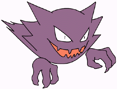Description: Because of its ability to slip through block walls, it is said to be from another dimension. Haunter is a dangerous POKéMON. If one beckons you while floating in darkness, you must never approach it. This POKéMON will try to lick you with its tongue and steal your life away.