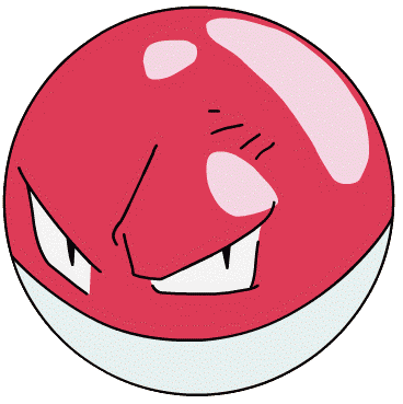 Description: Usually found in power plants. Easily mistaken for a Pokéball, they have zapped many people. VOLTORB is extremely sensitive - it explodes at the slightest of shocks. It is rumored that it was first created when a POKéBALL was exposed to a powerful pulse of energy.