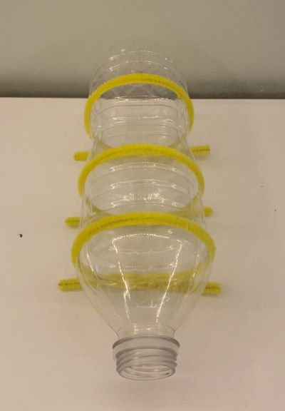 Glue your wings to the top of the bottle. Use one more pipecleaner for the antenna by wrapping it around near the opening part of the bottle. I used scissors to trim the length of this final pipecleaner.