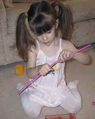 - Kaitlyn struggled for 5 minutes to slide the one straw into the other and finally managed it -- she was very determined to do it herself.